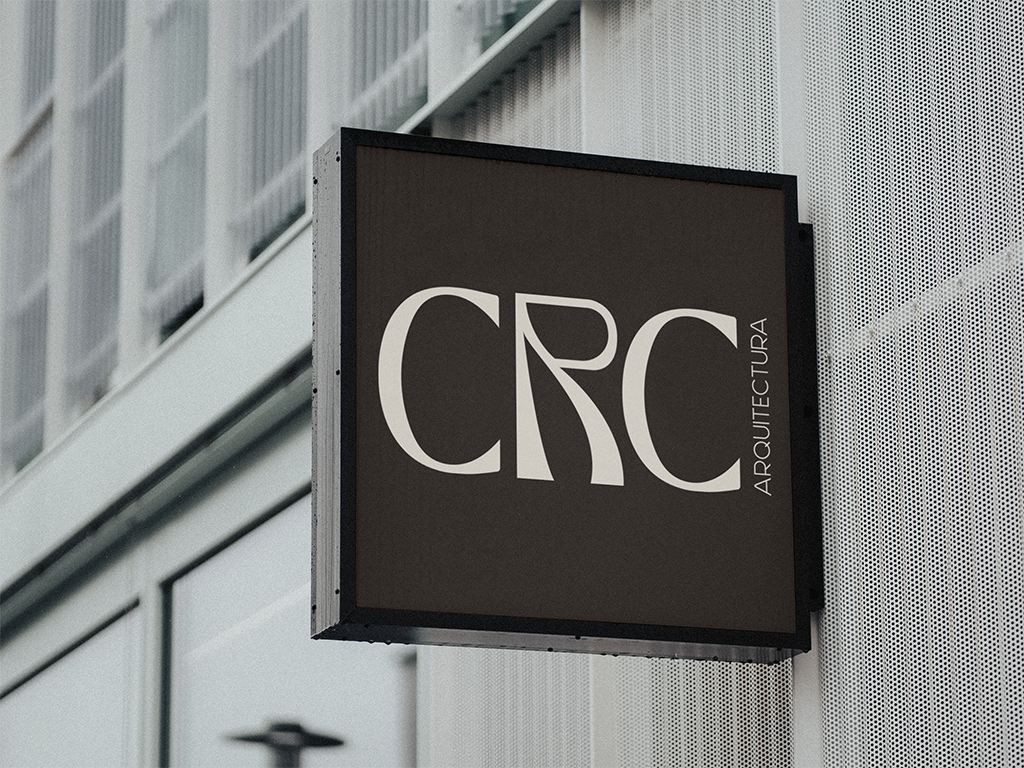 Acompañando al elemento gráfico, la palabra “ARQUITECTURA” se presenta con una tipografía moderna y sobria, que no compite con el gesto central, sino que lo complementa con firmeza y claridad. Su presencia sutil refuerza el carácter profesional y técnico del estudio, sin perder la sensibilidad artística que lo define.