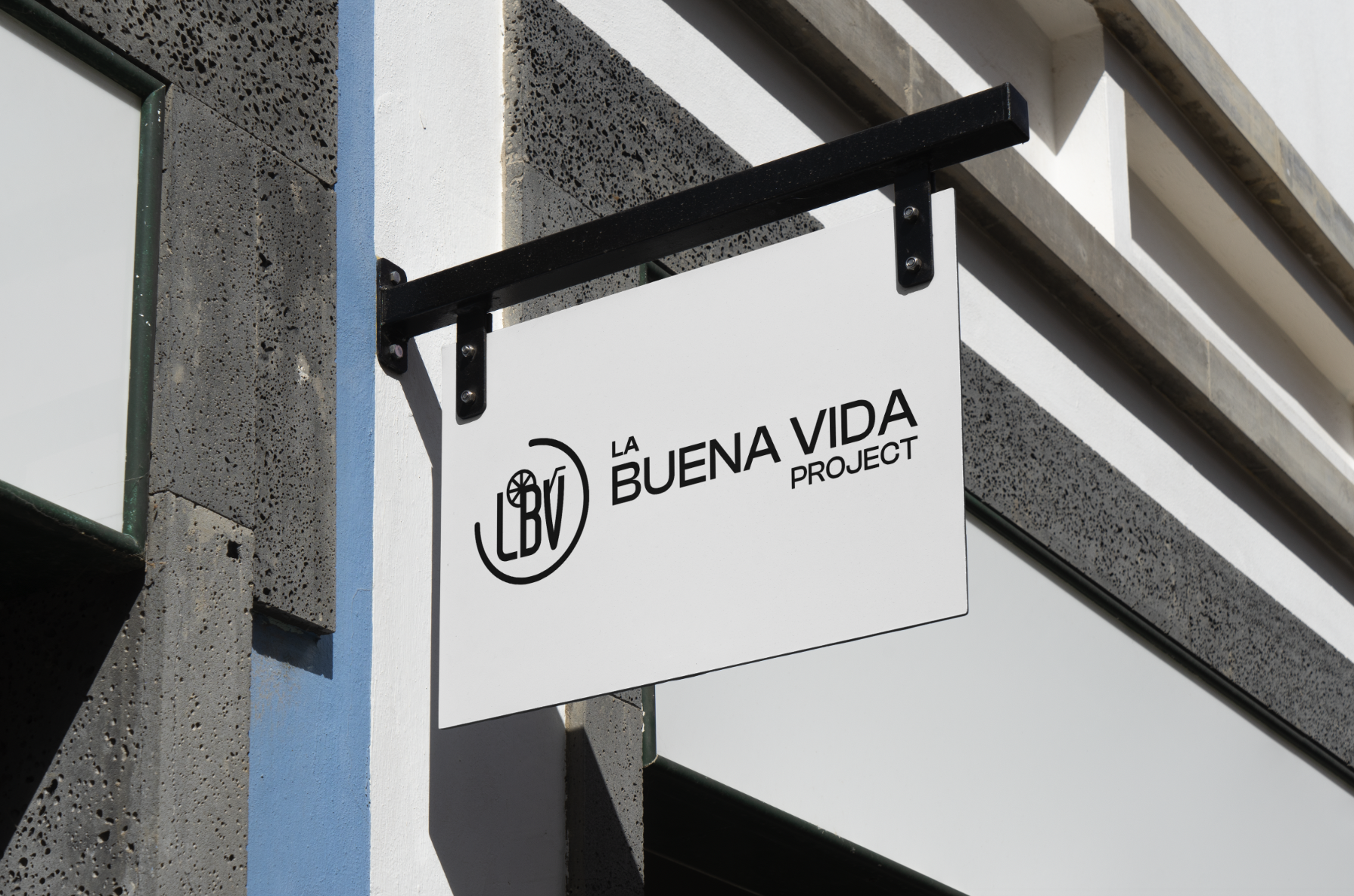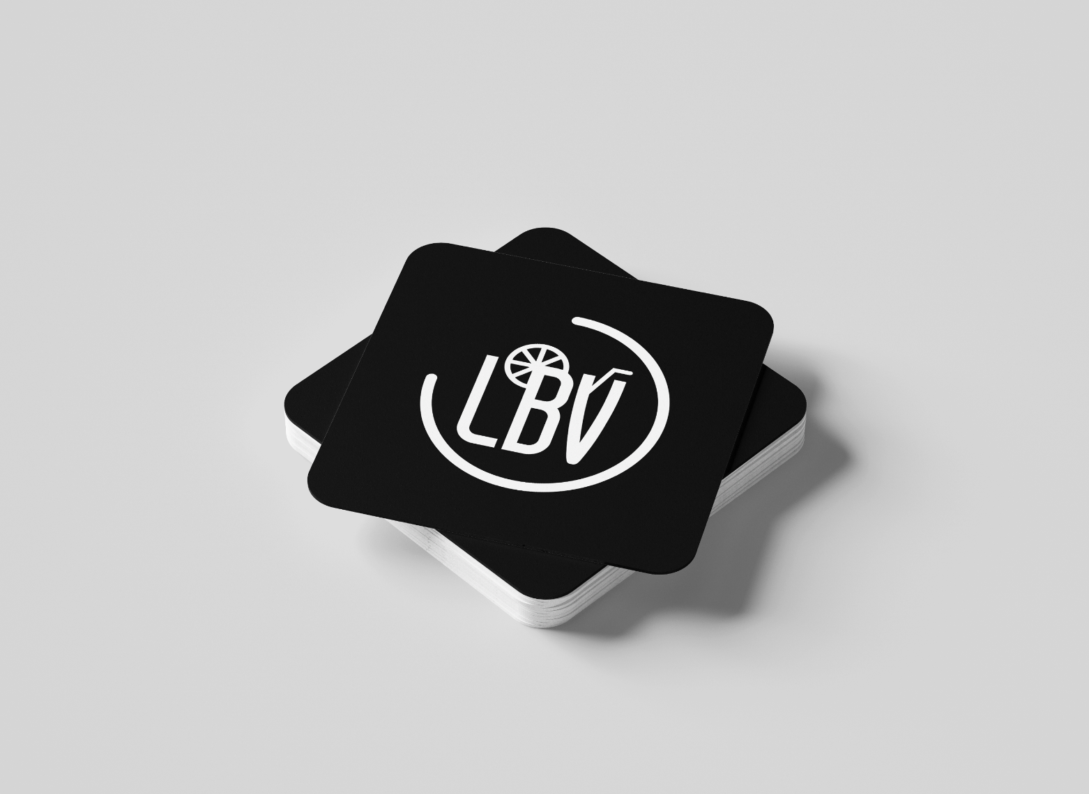 El isotipo está formado por las iniciales LBV, integradas dentro de un semicírculo abierto que sugiere dinamismo y apertura. En la parte superior de la “B” se incorpora una rodaja de cítrico estilizada, un recurso visual que alude directamente al mundo de los cócteles y refuerza el carácter artesanal y refrescante de la marca.