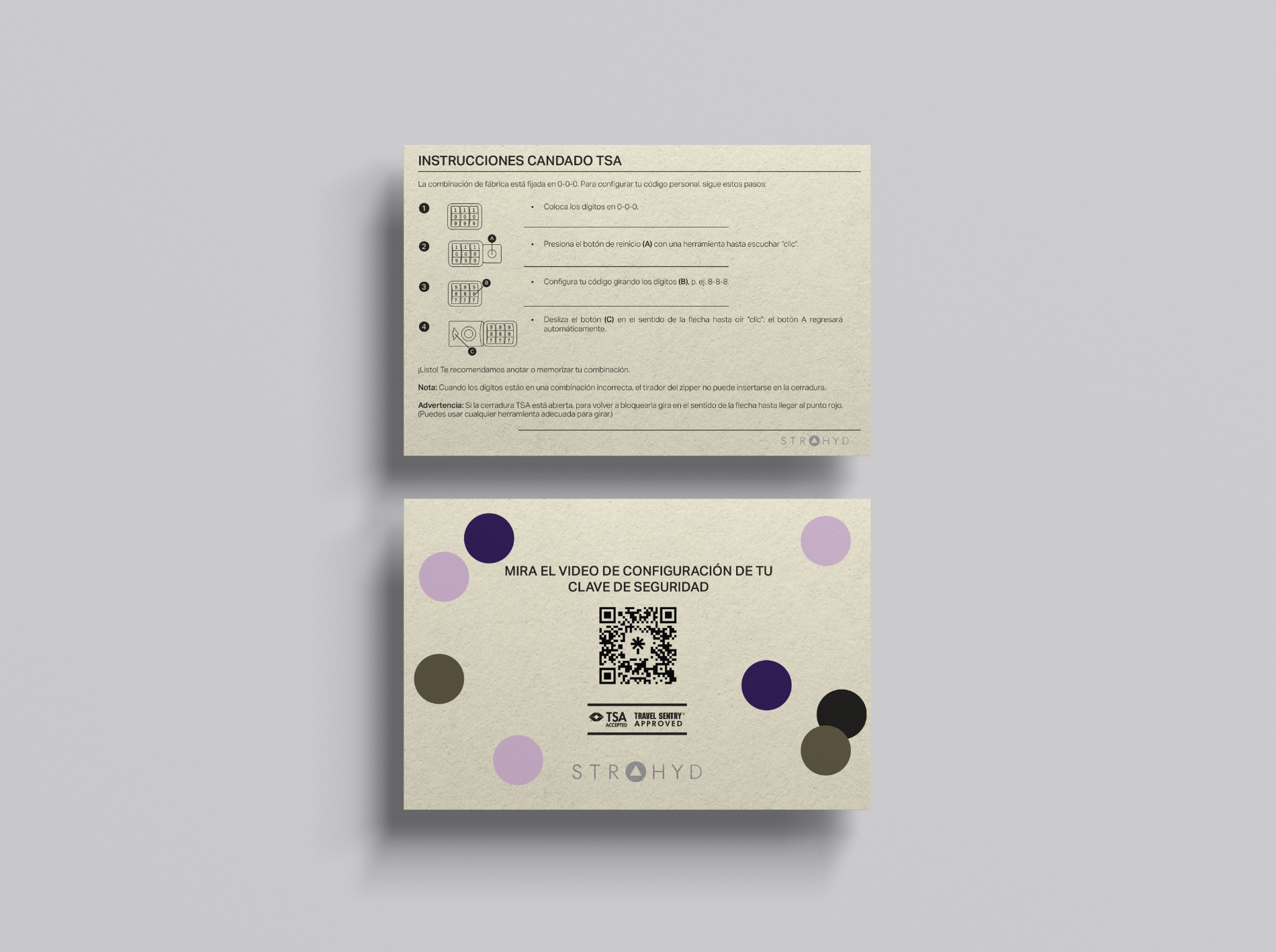 Este encargo consistió en el diseño integral de materiales gráficos destinados a enriquecer la experiencia de unboxing de una marca de equipaje premium. El objetivo fue reforzar la identidad visual de la marca y transmitir una percepción de cuidado, detalle y funcionalidad desde el primer contacto físico con el producto.